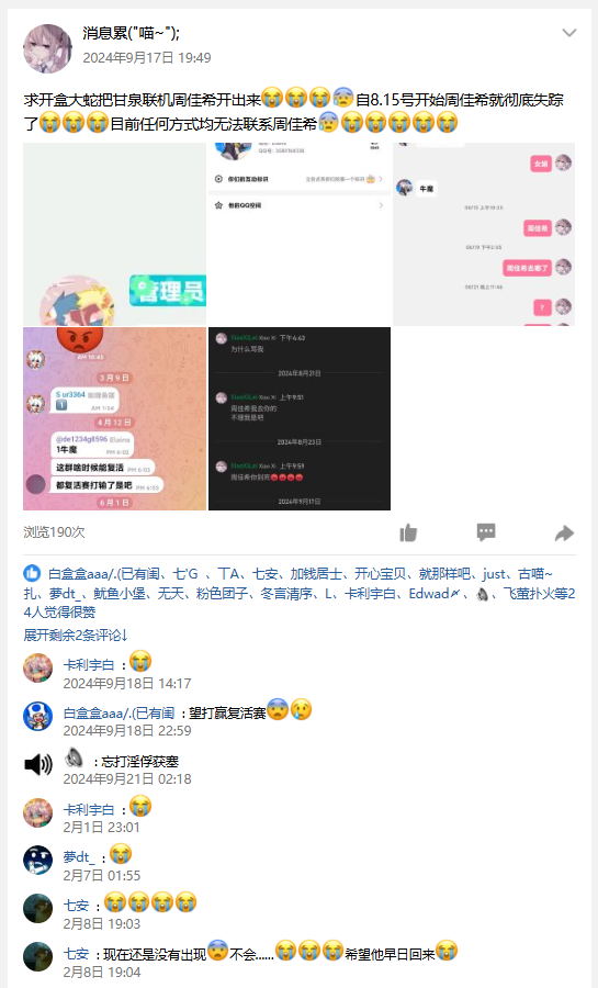 2024-08-15 , 突然神秘失踪,杳无音信。